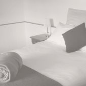All rooms are carefully decorated in a way that helps guests relax for a good night’s rest. This room is furnished with a double bed, built-in cupboards and two bedside drawers.